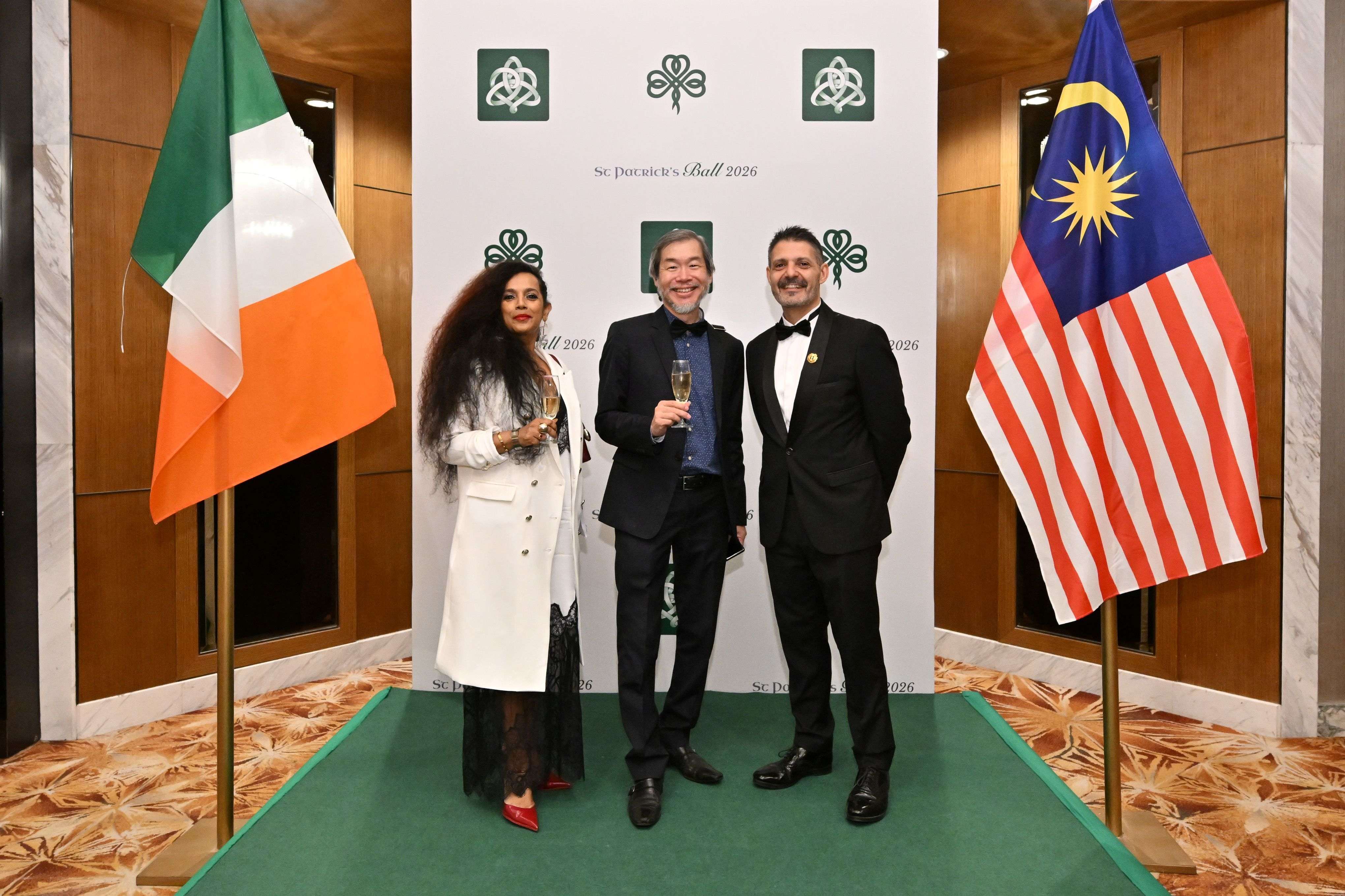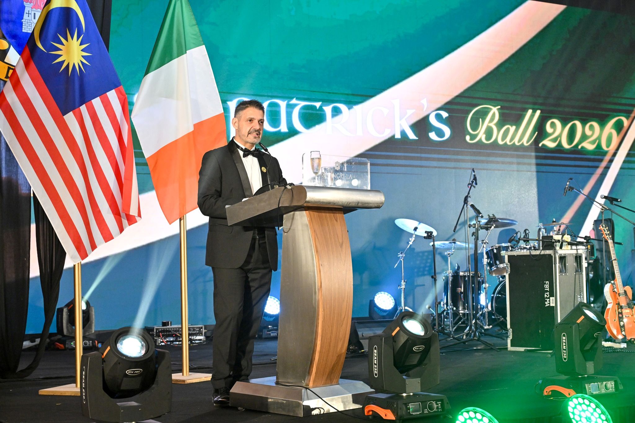 (above) President of St Patrick’s Society of Selangor, Tony Ocone, Ambassador of Ireland H.E Orla Tunney keynote address at St Patrick’s Ball 2026, and Dr Hew Yin Keat, Founder and Medical Director of M∙A∙C∙ Clinic